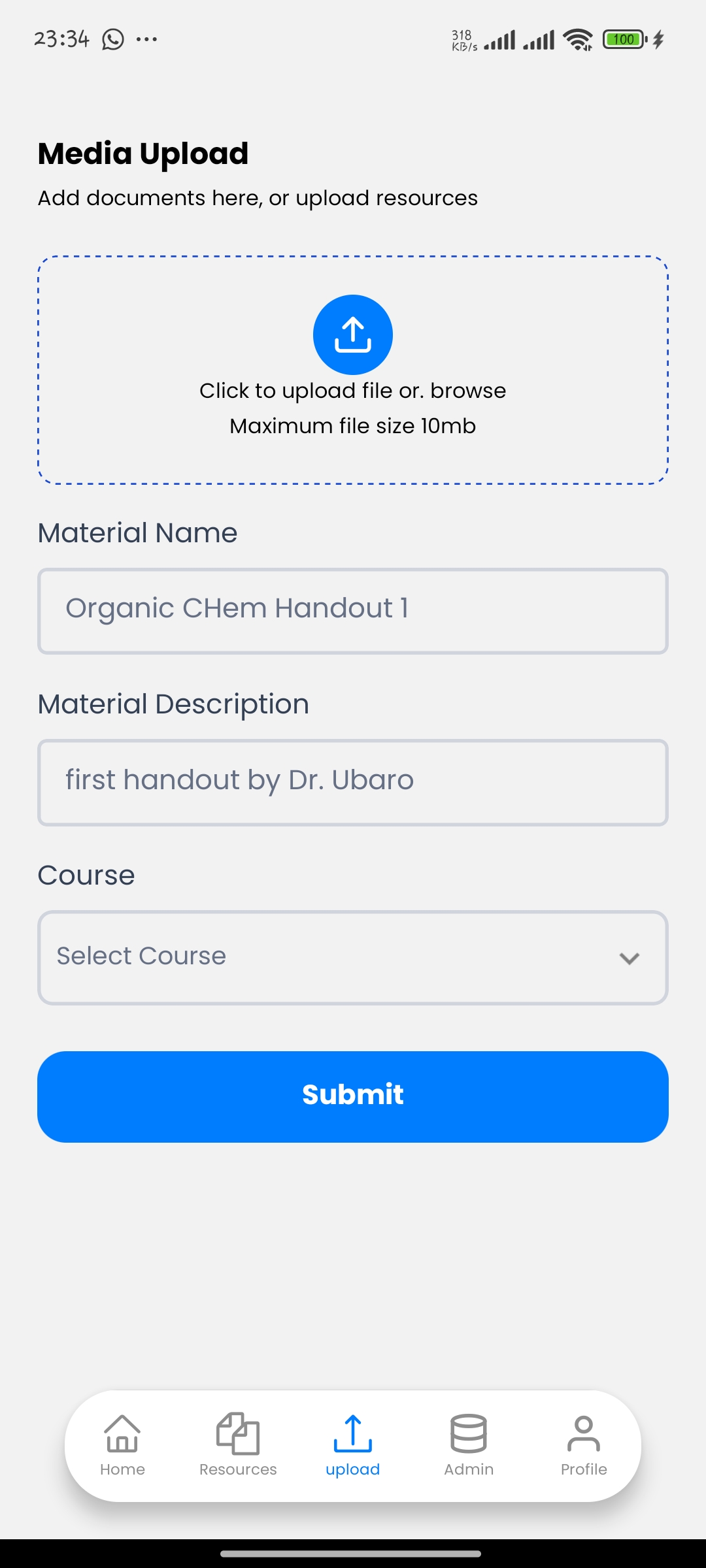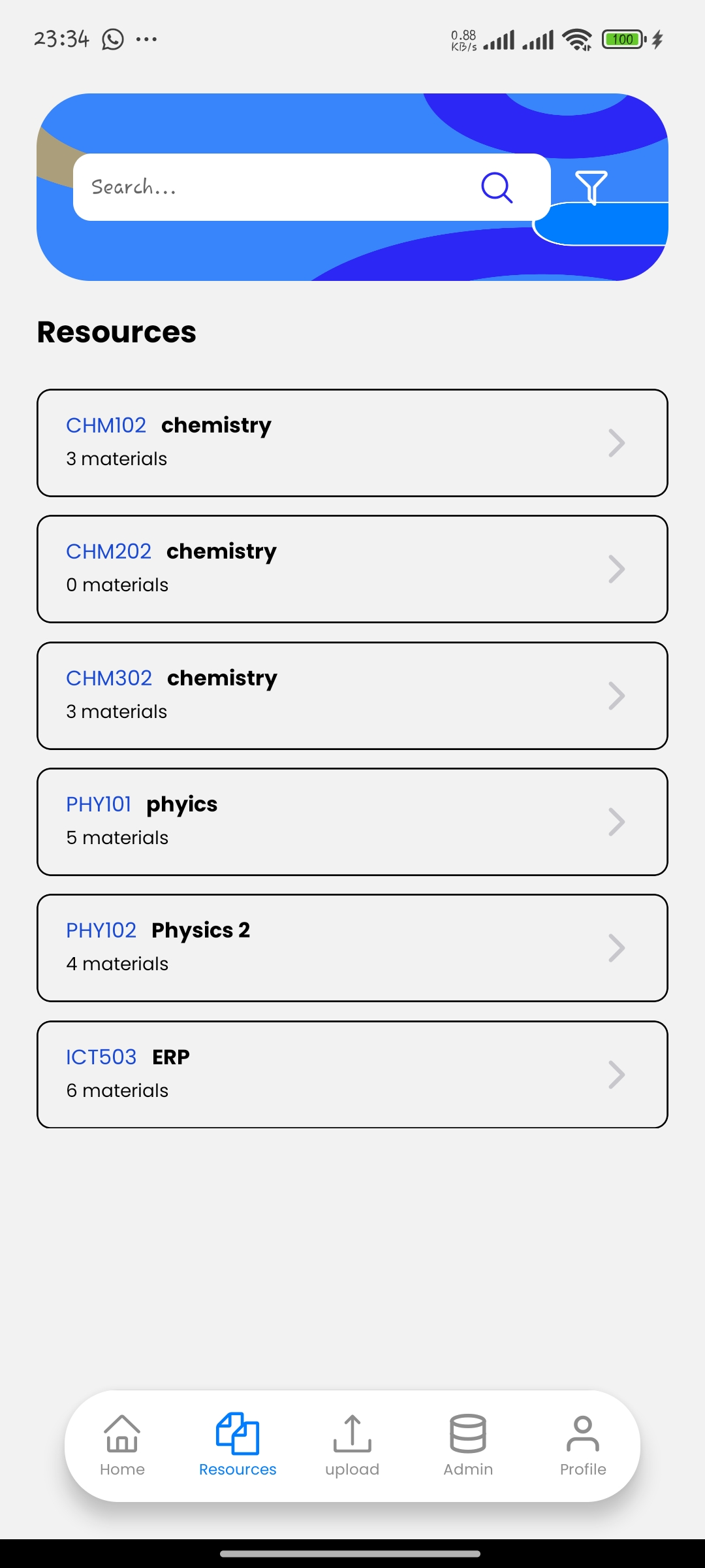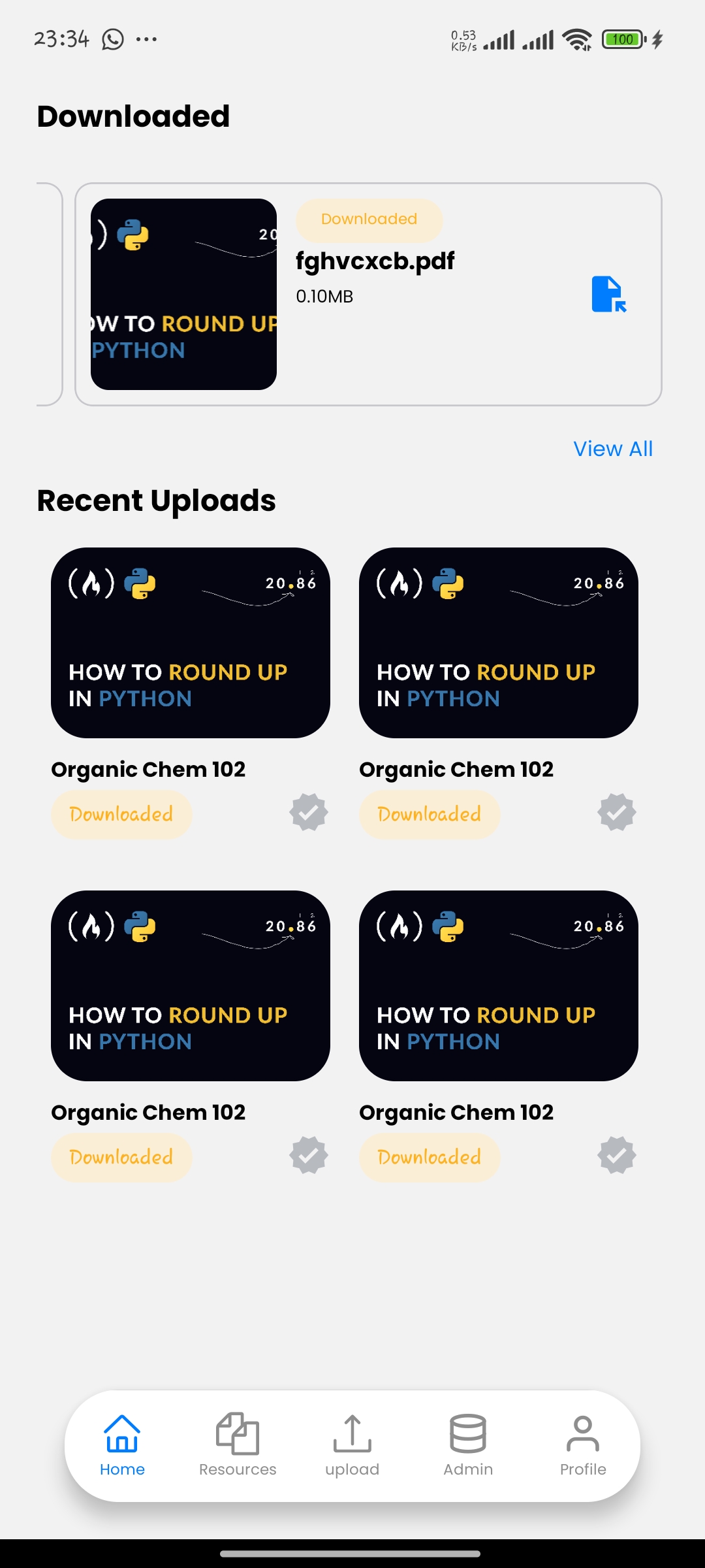 The Resource Sharing App, built with Expo for the frontend and Express with Prisma ORM (using MongoDB) for the backend, enables efficient file and course management. Key features include: